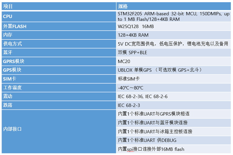 设备周期上报温度、湿度、电量,以及各种工作状态的数据,IOT核心板接收以后进行数据分析,并上报数据和当前GPS信息,用户可以随时查看,若发现冰箱状态异常系统将即时上报。